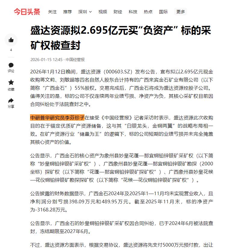 盛达资源拟2.695亿元买“负资产” 标的采矿权被查封